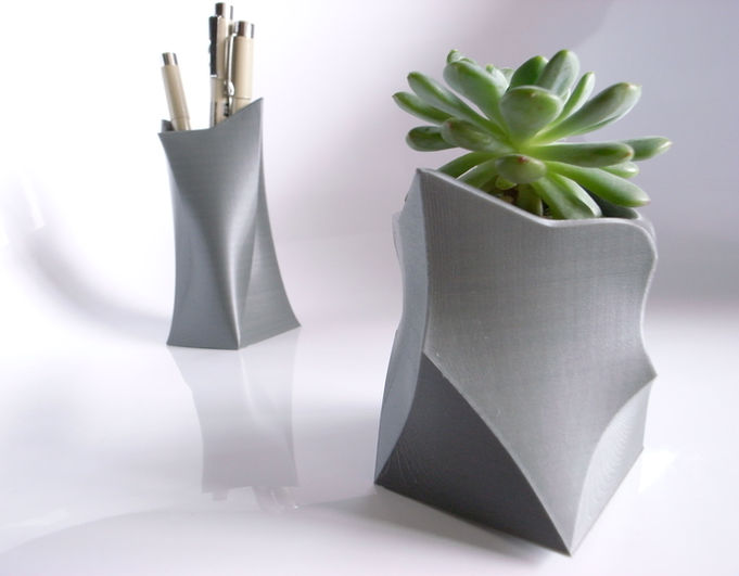 Flore is a pen-holder inspired by the gestural movement of drawing. Flos is a succulent planter designed with the geometry of succulents. All objects were 3D printed using PLA plastic with a .08mm layer height.